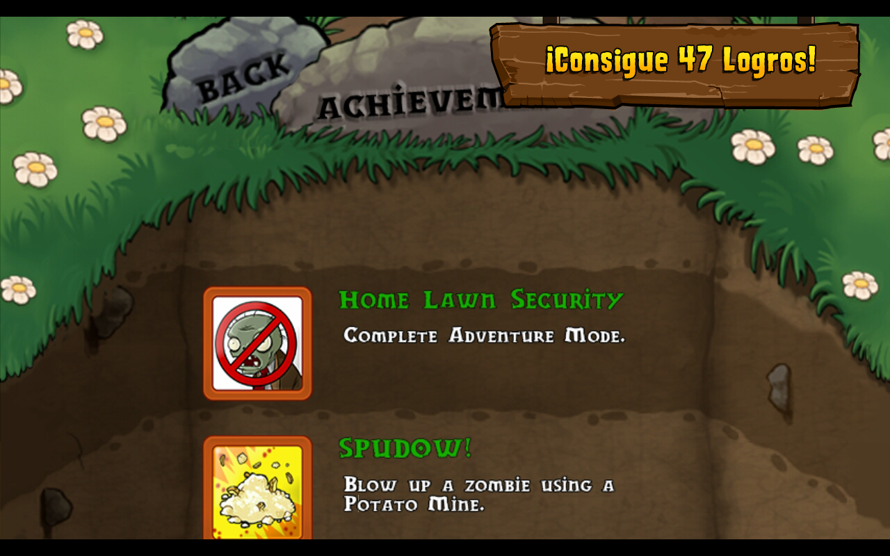 habilidades distintas. • Consigue 49 plantas duras de pelar y consigue monedas para comprar un caracol mascota, potenciadores y muchas cosas más. • Abre el Almanaque para ver todas las plantas y los zombis, además de curiosidades y citas. • Consigue 47 logros monstruosamente divertidos y demuestra tu habilidad destruyendo zombis. • Disfruta de toda la diversión zombi del juego de éxito de PC/Mac optimizado totalmente para Android. • Gráficos divertidos, una gran banda sonora y un vídeo musical extra. • ¿Necesitas monedas para comprar todas las novedades? Consigue hasta 600.000 monedas en el menú principal. • Incluye todos los minijuegos y todas las demás funciones del juego original. • Diseñado por PopCap, creadores de Bejeweled, el mejor rompecabezas del mundo.