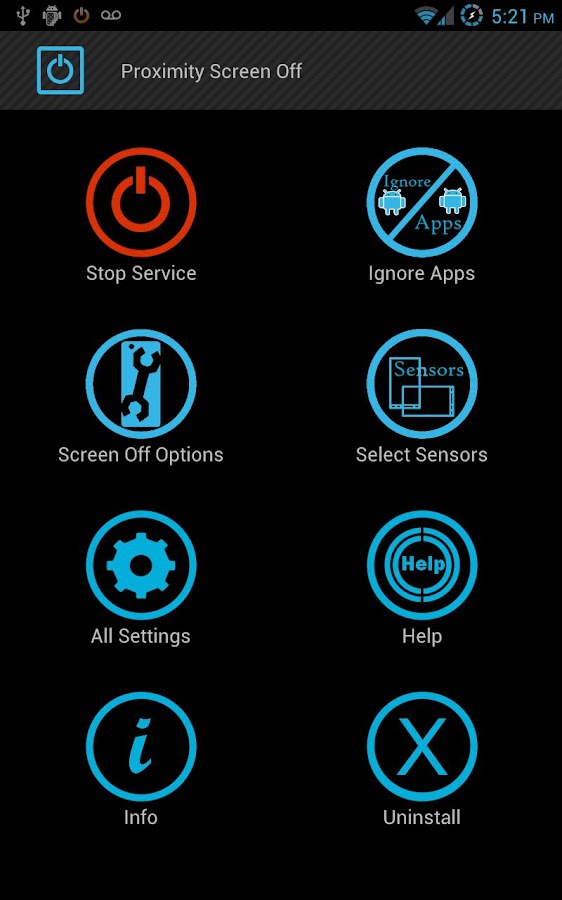 they are different for different devices. • Enable screen on/off during calls only • Disable call handling completely • Battery Saving options: 1) Option to De-Activate sensors after timeout 2) Option to De-Activate sensors if power button is pressed or phone goes idle
