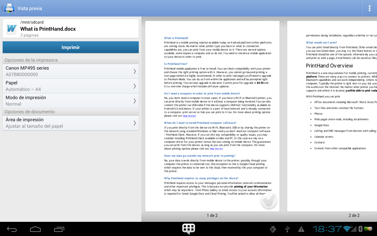 printhand.com e imprima en cualquier impresora siempre y cuando pueda