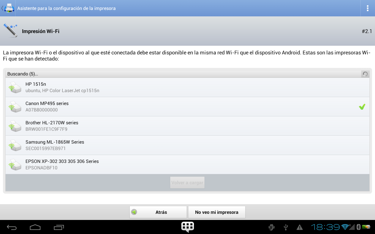 de la impresora detectará sus impresoras automáticamente y le indicará
