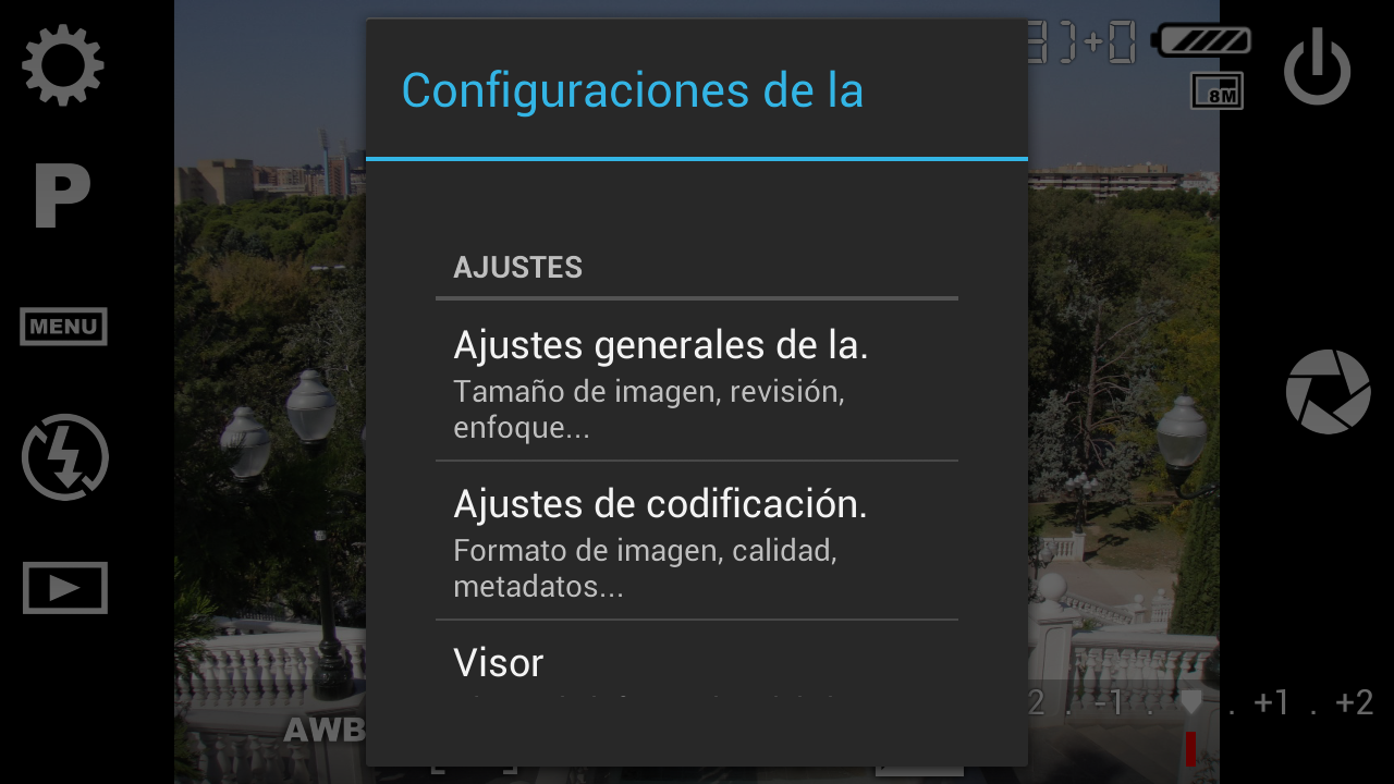** Tocar para enfocar requiere Android 4+. En Android 2.x sólo está disponible en algunos controladores de cámara de Motorola, HTC y Nvidia, así como algunos de Samsung y otros fabricantes.